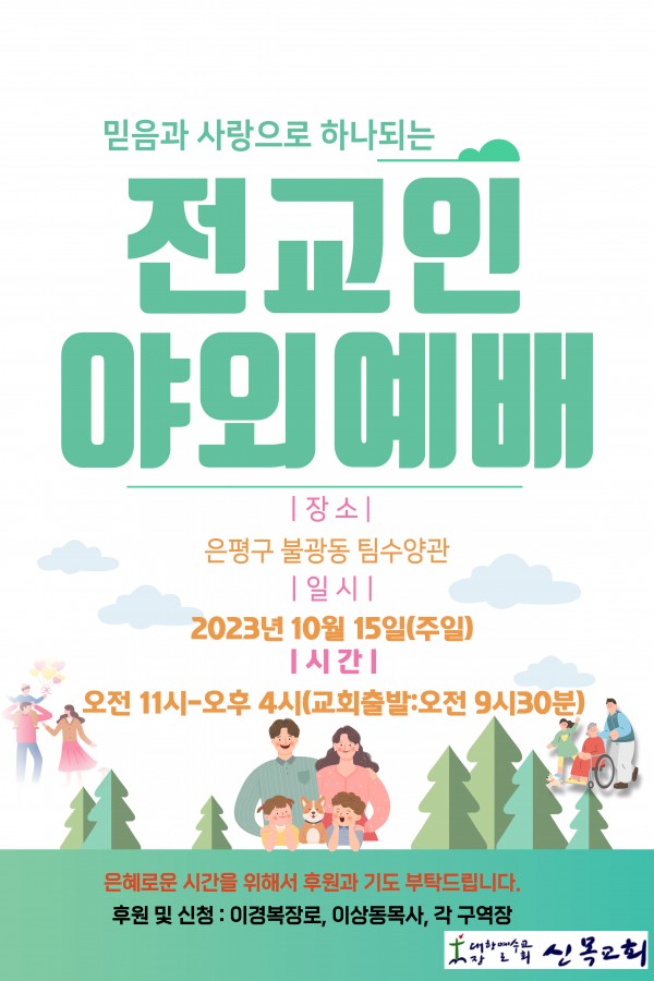 신목앨범 2023년 신목교회 전교인 한마음 야외예배 작성자신목교회 등록일 23-09-21 조회4,801회 이름신목교회 본문 2023년 신목교회 전교인 한마음 야외예배를 계획 중에 있습니다. 기도와 후원부탁드립니다. 댓글목록 댓글목록 등록된 댓글이 없습니다. 2023 신목교회 한마음 야외예배1 2023 신목교회 교회학교 여름성경학교, 수련회 목록