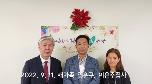 2022년 9월 11일 새가족 임훈구, 이은주집사 작성자신목교회 등록일 22-09-12 조회507회 이름신목교회 본문 2022. 9. 11일 새가족 임훈구, 이은주집사 스스로사랑하고 축복합니다. 2023년 새가족 4월 2일, 23일 새가족 봉학근성도, 이유정성도 2022. 5. 15일 새가족 (이근식집사, 경은순권사) 목록