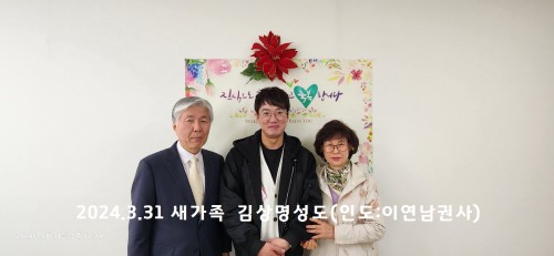 2024.3.31 새가족 김상명성도(인도:이연남권사) 작성자신목교회 등록일 24-04-02 조회454회 이름신목교회 본문 김상명성도(인도:이연남권사)사랑하고 축복합니다. 2024.8.11 새가족 문선영성도 2023년 새가족 4월 2일, 23일 새가족 봉학근성도, 이유정성도 목록